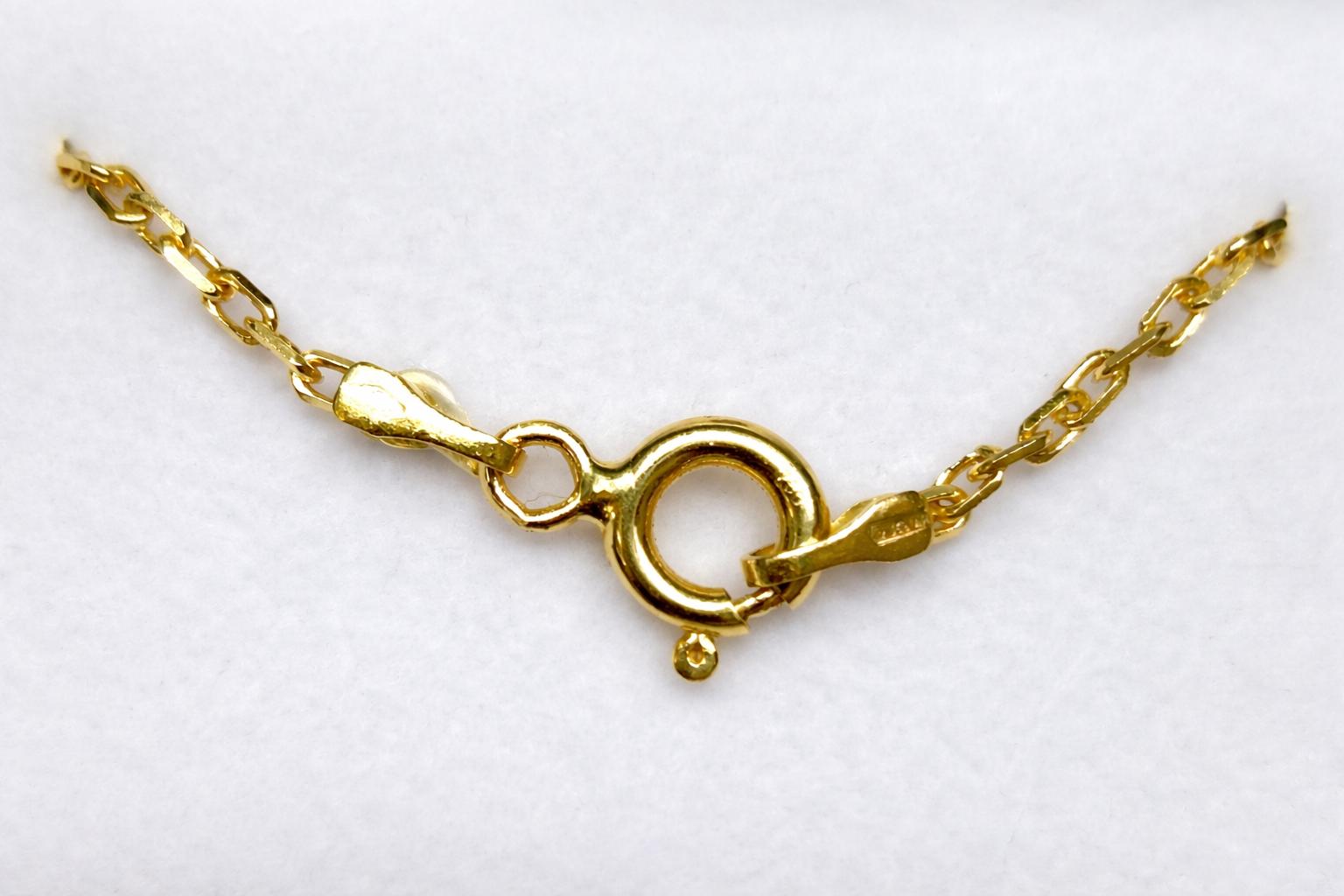 Incorpora cierre de reasa, un cierre clásico, fiable y adecuado para este tipo de cadenas, y está contrastada por el fabricante, garantizando la autenticidad del oro de 18 quilates.