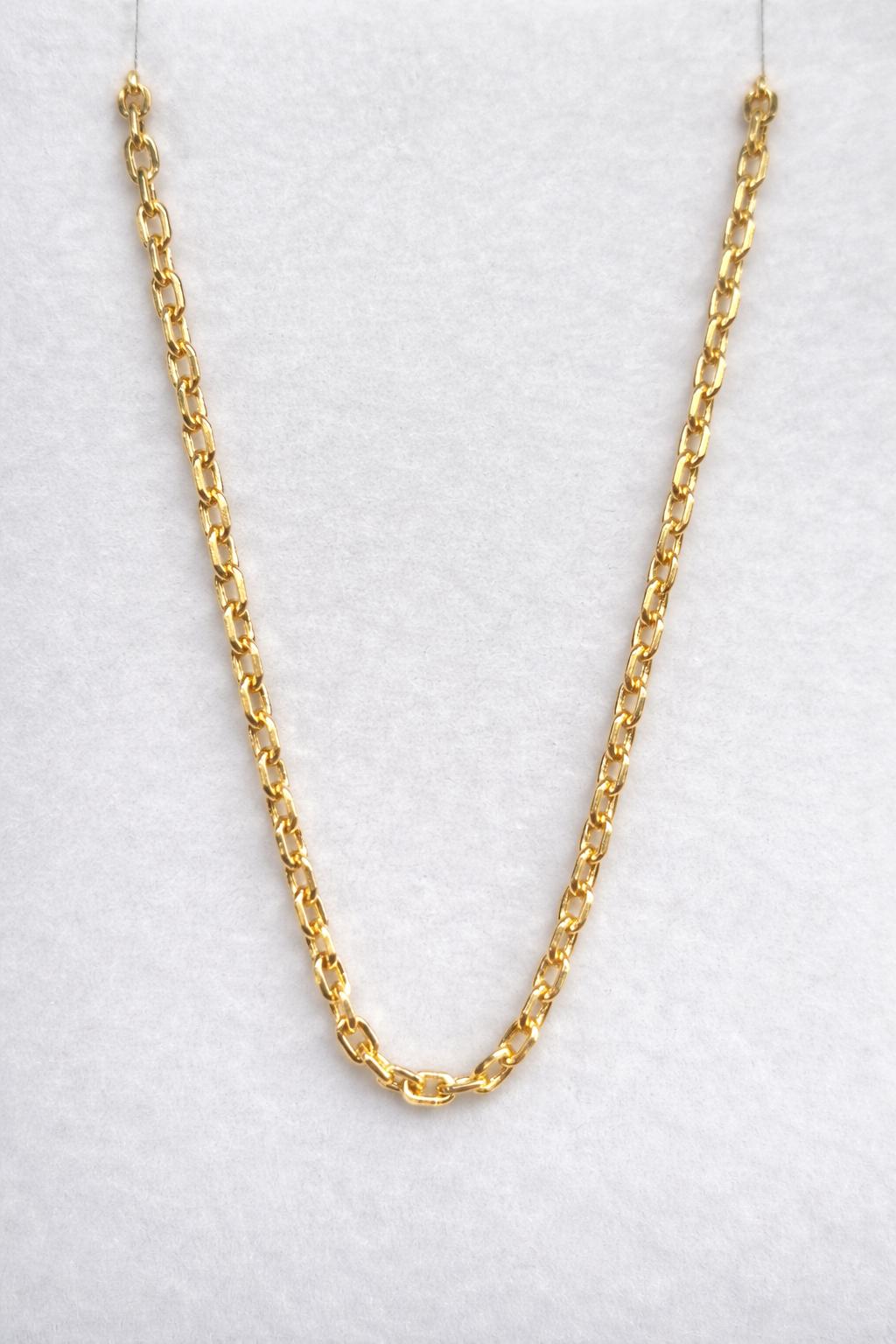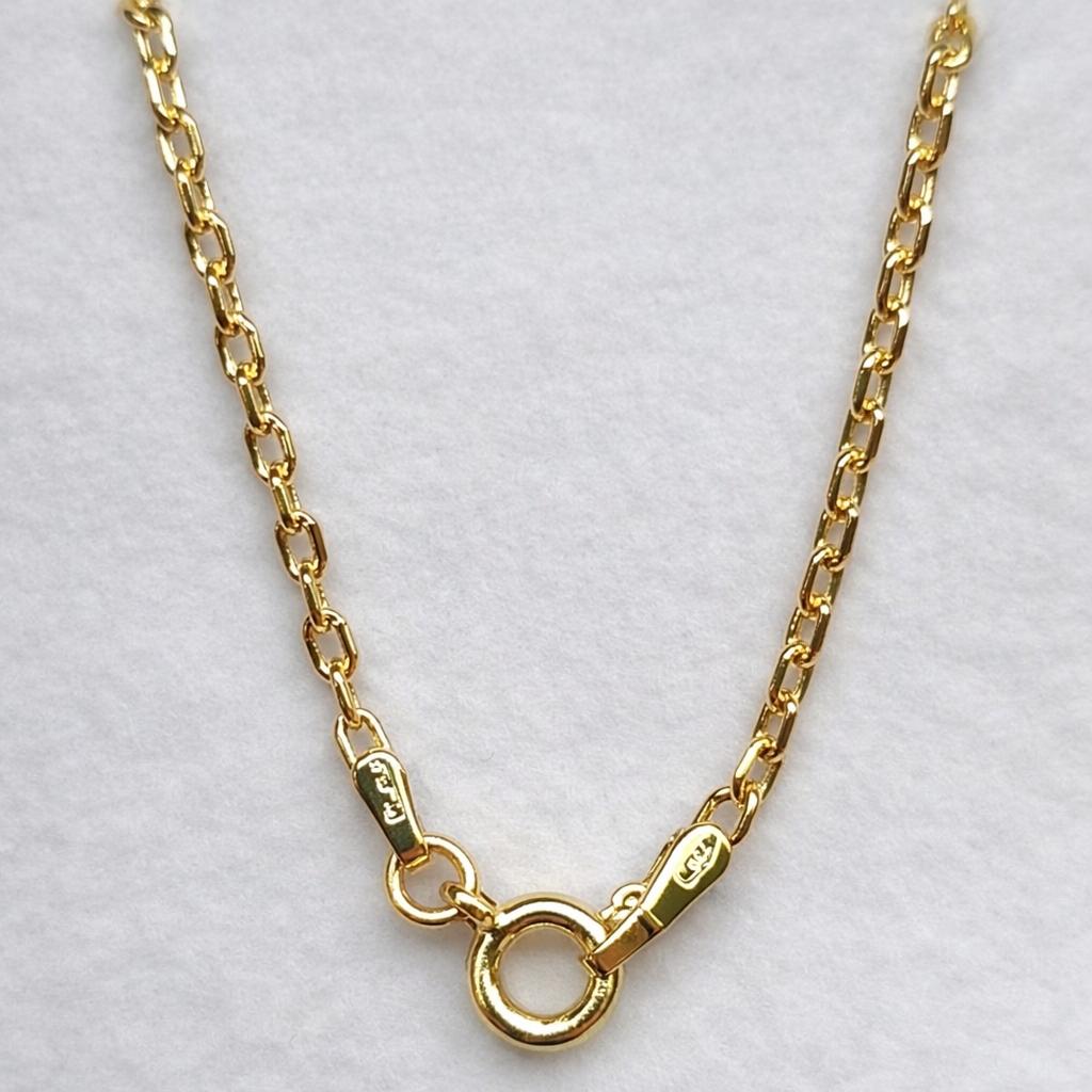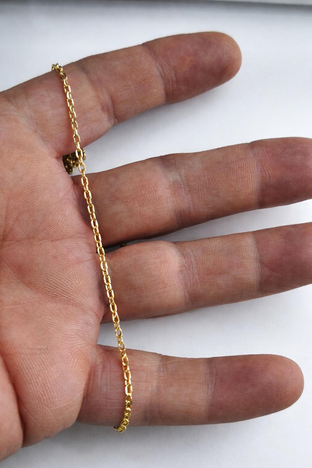 Con 50 cm de longitud, 1,80 mm de grosor y un peso aproximado de 3,20 gramos, ofrece un grosor medio, ideal para llevar tanto sola como acompañada de medallas, cruces o colgantes de tamaño pequeño o medio.