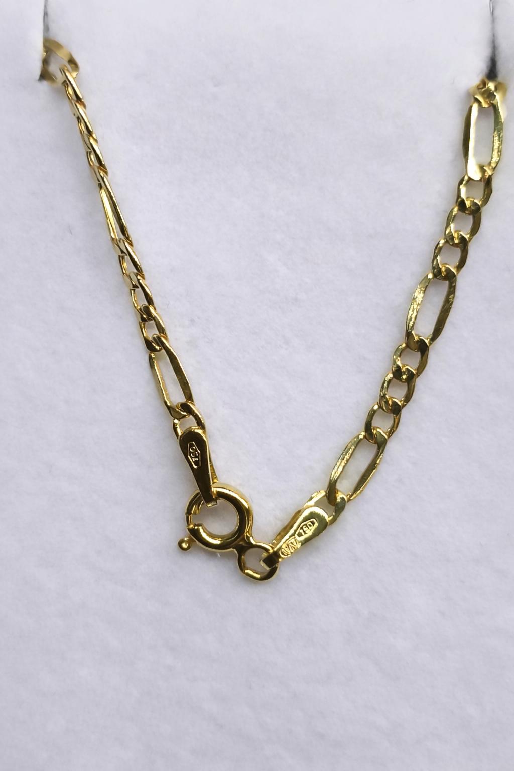 Esta cadena de oro de 18 quilates de primera ley (750 milésimas) presenta un elegante diseño estilo Cartier 3x1, caracterizado por su secuencia clásica de eslabones alargados que aportan personalidad y presencia sin resultar excesiva. No pertenece a la famosa marca Cartier, sino que adopta el estilo 3x1 tradicional.