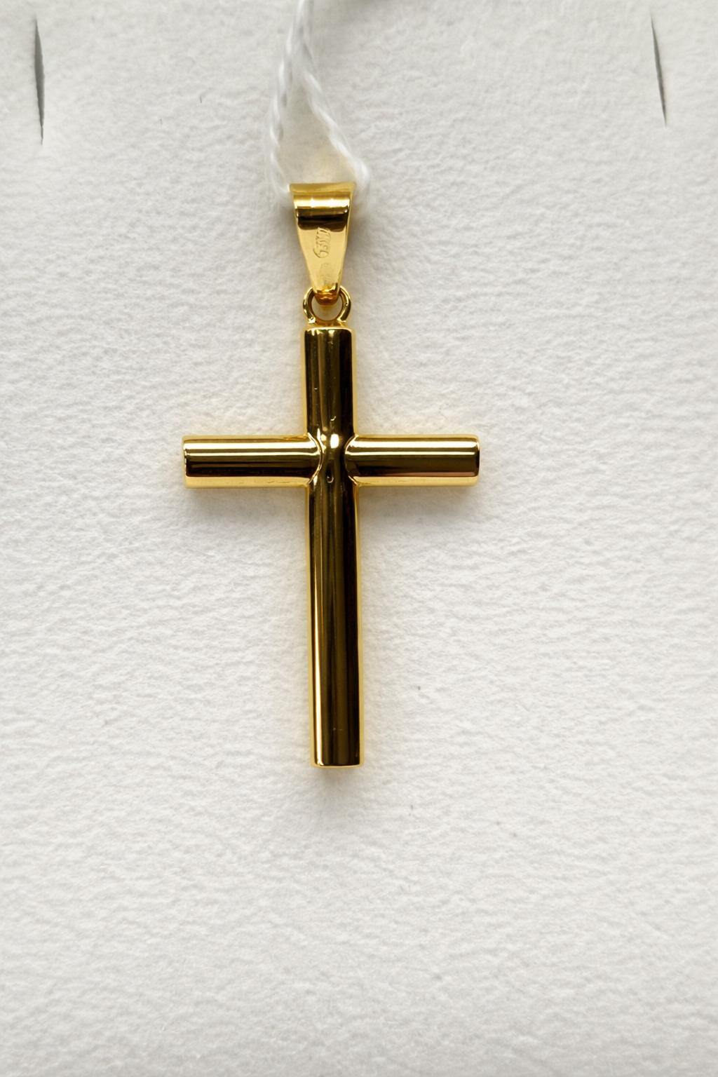 Cruz lisa de oro de 18 quilates semi hueca de 30 x 15,75 mm