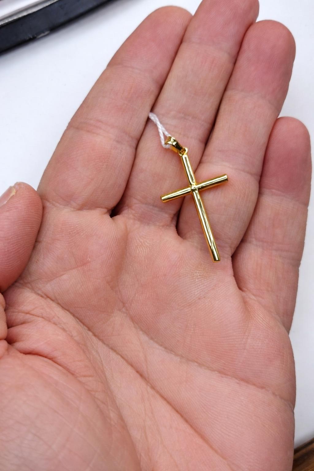 Cruz lisa unisex de oro amarillo de 18 quilates semihueca 34,5 mm