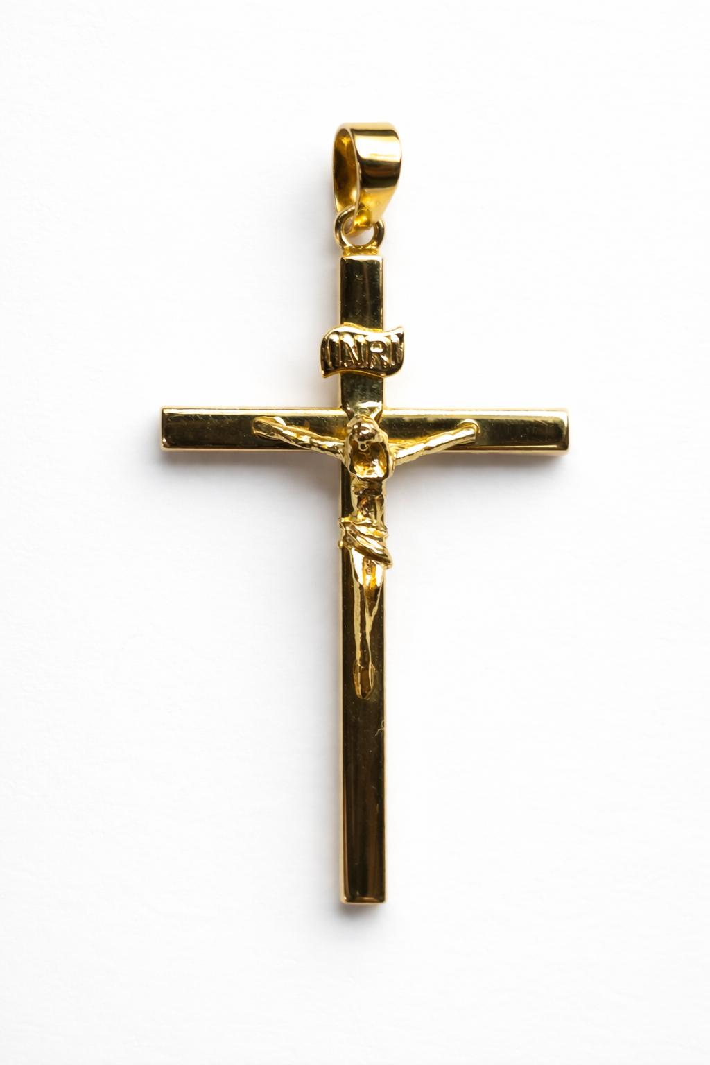 La cruz está contrastada por el fabricante, garantizando la autenticidad del oro de 18 quilates.